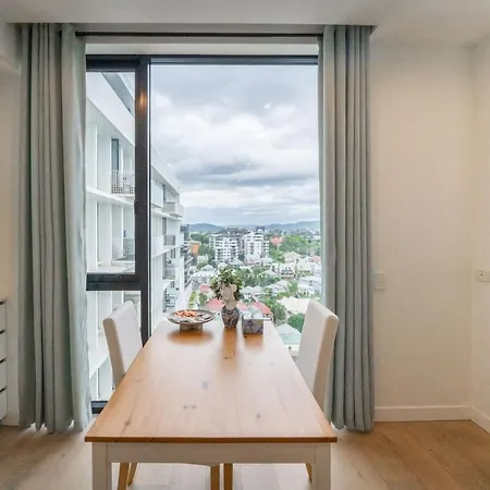 Modern 1 Bedroom With City Views Pool And Gym apartment has a balcony and a fully equipped kitchen, and comforts such as air conditioning. The property features a bathroom with a dryer and bath sheets. Moreover, there is a washing machine as well.